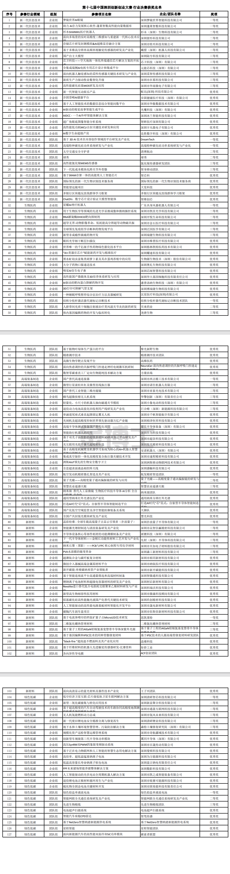 關(guān)于公布2025年第十七屆中國深圳創(chuàng)新創(chuàng)業(yè)大賽行業(yè)決賽獲獎(jiǎng)名單的通知